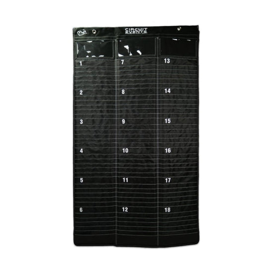 Organize your tournament or league round with the MVP Tournament Scoreboard! This tri-fold leaderboard was designed for MVP Circuit Events to assist event organizers with their hole assignments along with a convenient place to organize and display the results. Built of durable polyester with large metal grommets for easy hanging and space for 6 player slots per hole.