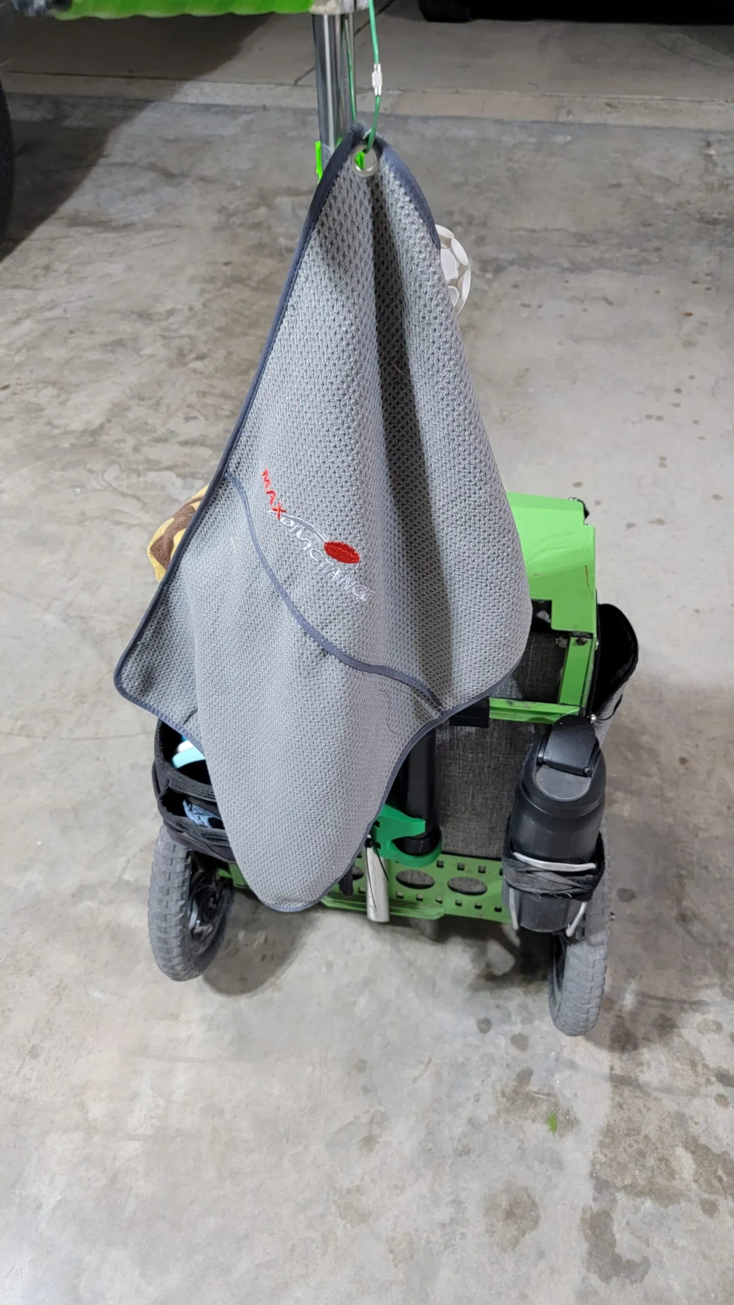 Our towels are made with a large pocket to allow you to throw your disc in instead of carrying your wet disc to your next lie. On top of having the pocket, it has another section of microfiber cloth hanging down to dry your disc as well.